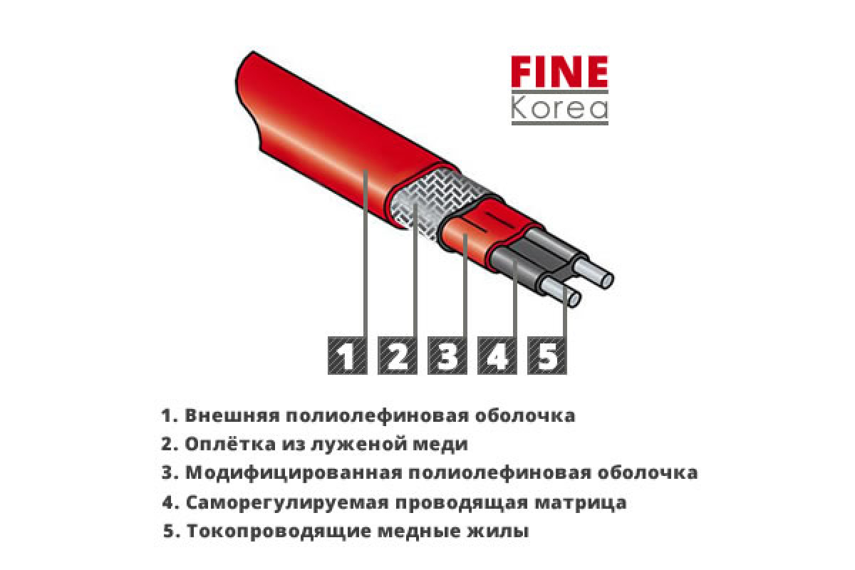 Внешняя изоляция из модифицированного полиолефина. Может применяться в условиях повышенной влажности, для слабых неорганических растворов.