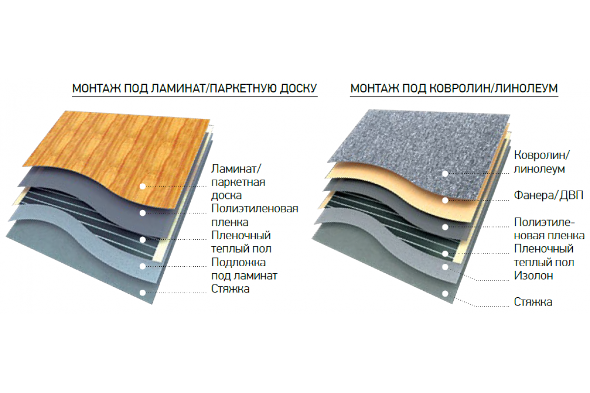 Комплект инфракрасного теплого пола предназначен для монтажа под ламинат.