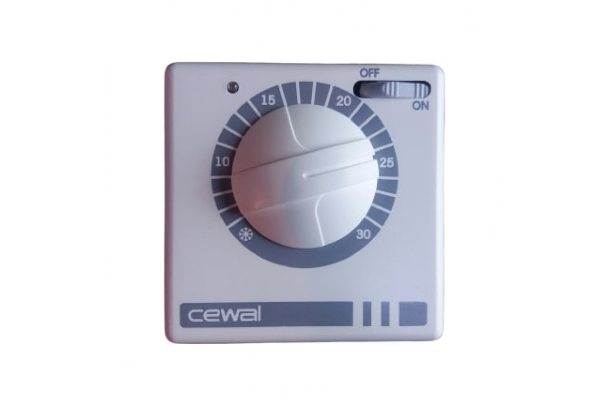 Терморегулятор CEWAL RQ30 очень прост в использовании. Все управление осуществляется с помощью поворотного диска. Вы устанавливаете желаемую температуру, и термостат автоматически включает и выключает прибор для поддержания заданной температуры воздуха.