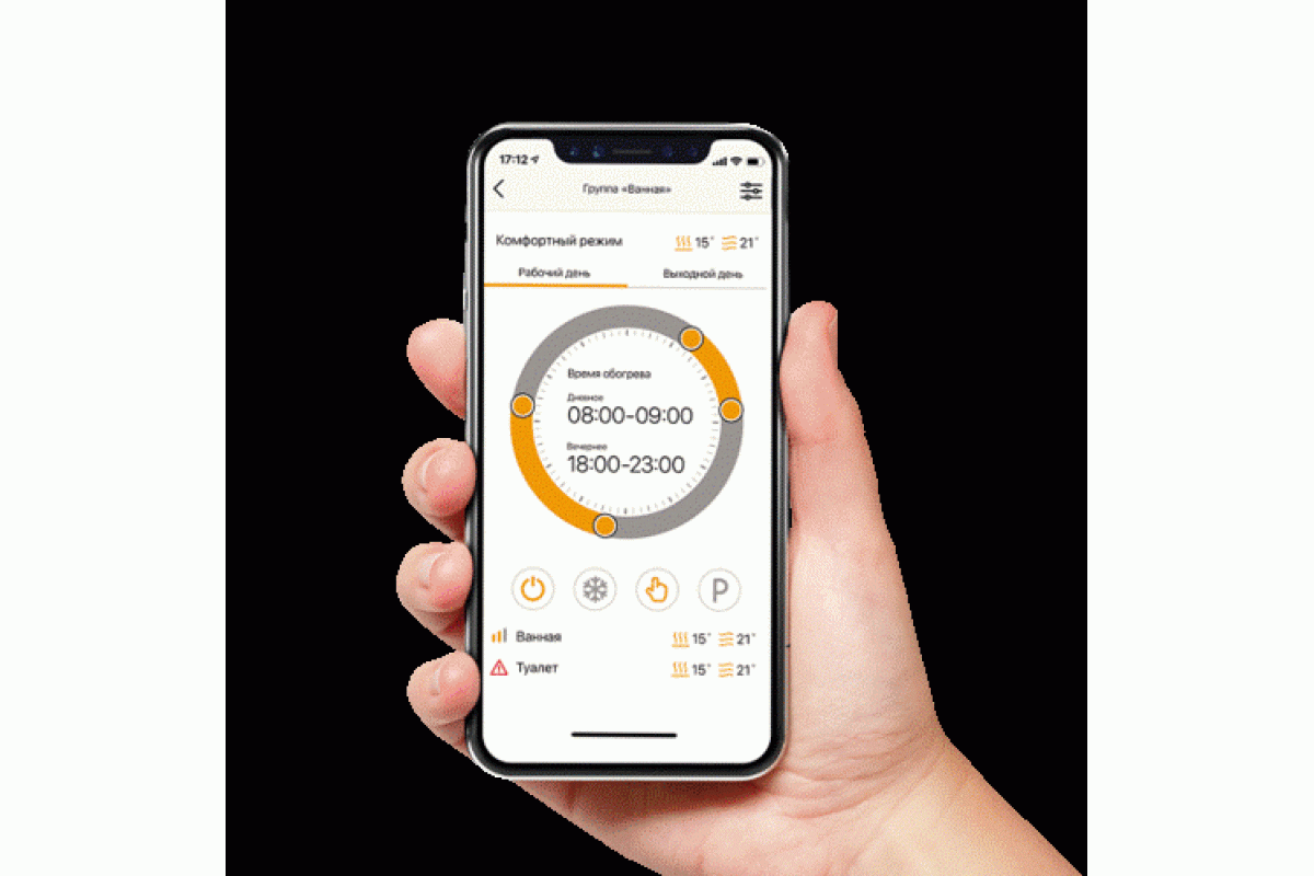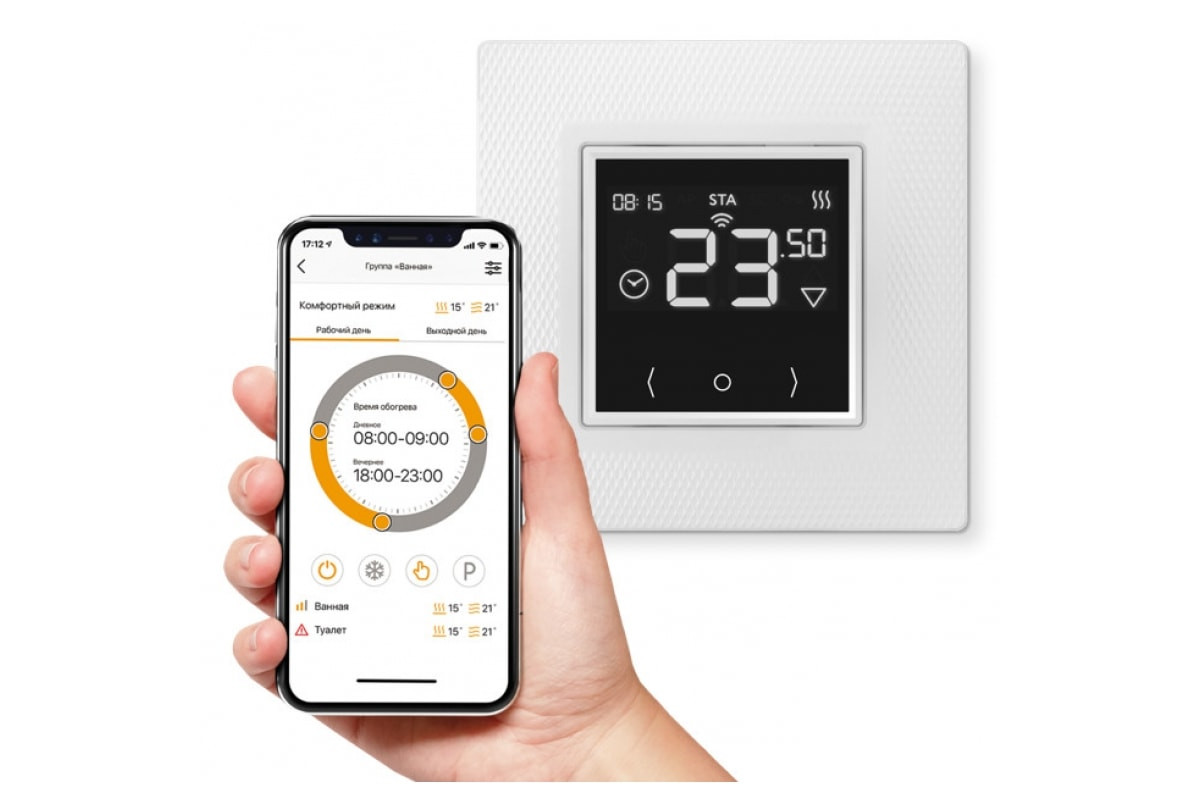 - Двойное управление обогревом: со смартфона или экрана терморегулятора