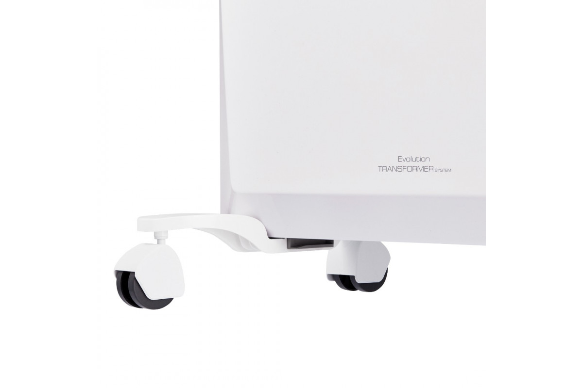 Трапециевидная форма корпуса и выносная конструкция крепления блоков управления, позволяет равномерно распределять нагретый воздух внутри конвекционной камеры, прогревая помещение на 30% быстрее.