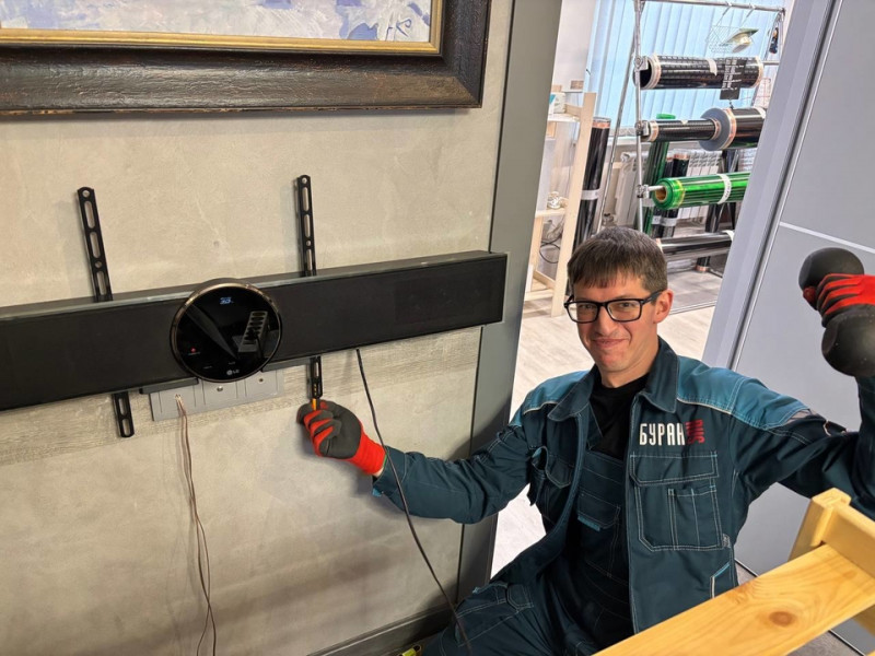 Сегодня наш специалист, электрик Дмитрий, выполнил аккуратный и профессиональный монтаж музыкальной панели LG в руководящем кабинете компании «Буран» (г. Томск). Работа небольшая по объёму, но максимально важная с точки зрения эстетики, удобства и правильной интеграции техники в интерьер.