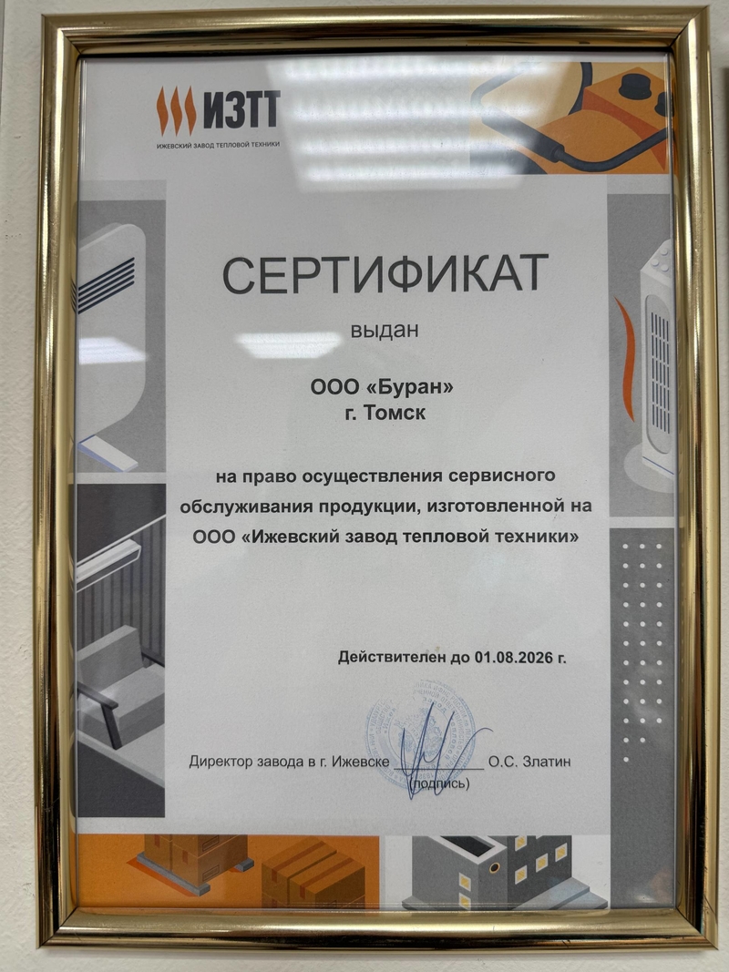 Одно из ключевых преимуществ компании — наличие собственного Сервисного центра с официальными авторизациями производителей. В том числе компания «Буран» является авторизованным сервисным партнёром Ижевского завода тепловой техники (ИЗТТ).
